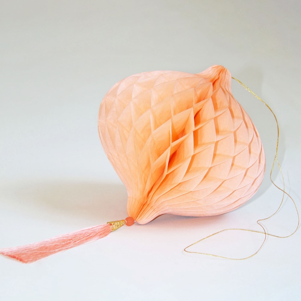 Бумажное украшение Шар-соты с кисточкой, персиковый - 1шт.