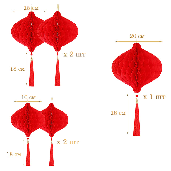 Бумажное украшение Шары-соты с кисточкой НАБОР 5 шт, красный