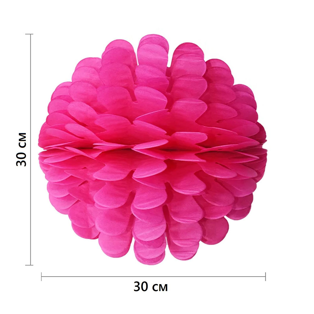 Бумажное украшение Цветочный шар-соты 30 см, малиновый