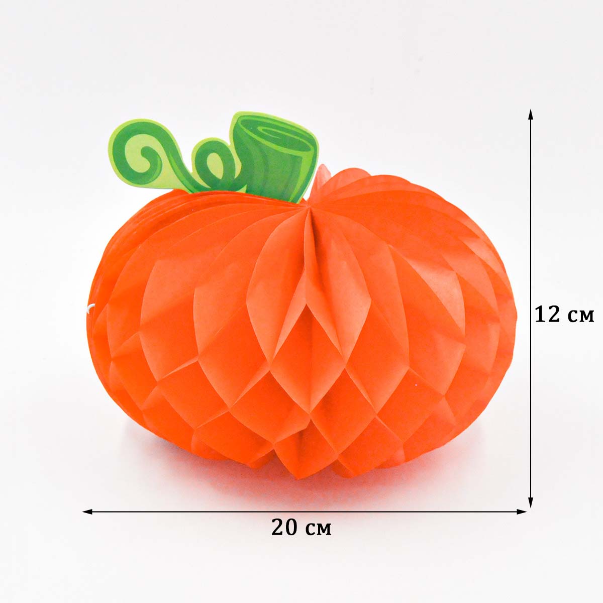 Бумажное украшение "Тыква" 20х12 см оранжевый  — сочный и праздничный элемент для оформления стола, фотозон, витрин и интерьера. Поставляется в сложенном виде, легко раскрывается в пышную объёмную форму.