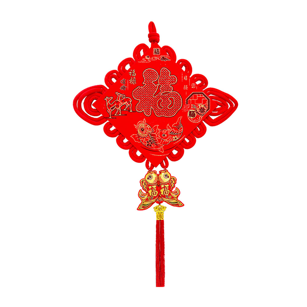 Традиционный китайский узел в форме ромба с символичным дизайном. Яркое сочетание красного бархата и золотых элементов создает эффектный акцент в интерьере.