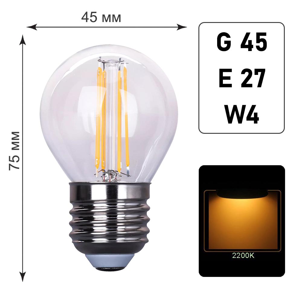 Лампа филаментная G45 E27 W4 K2200
