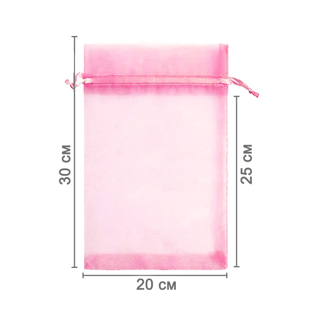 Мешочек из органзы 20 х 30 см — стильный аксессуар для упаковки средних и крупных предметов. Полупрозрачная ткань подчёркивает содержимое и придаёт аккуратный вид.