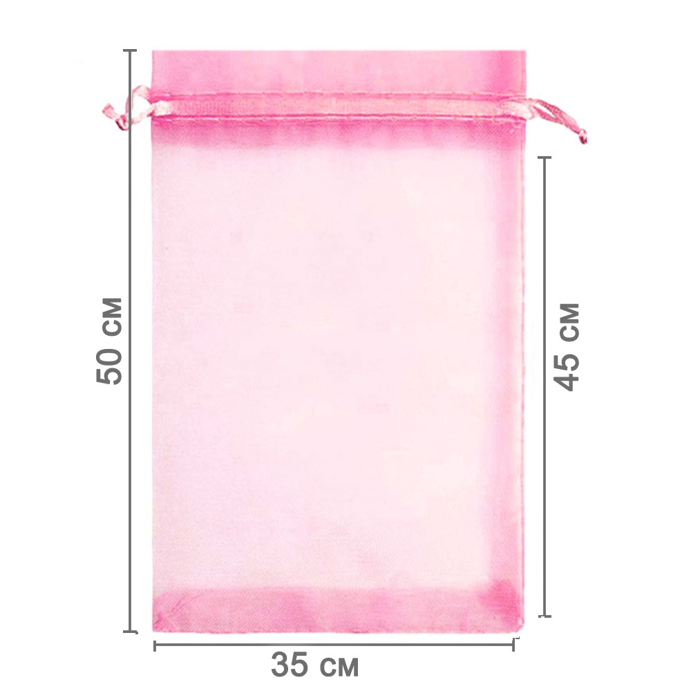 Мешочек из органзы 35 х 50 см — стильная и удобная упаковка для крупных подарков и хранения больших предметов. Лёгкая ткань подчёркивает содержимое и создаёт праздничный вид.