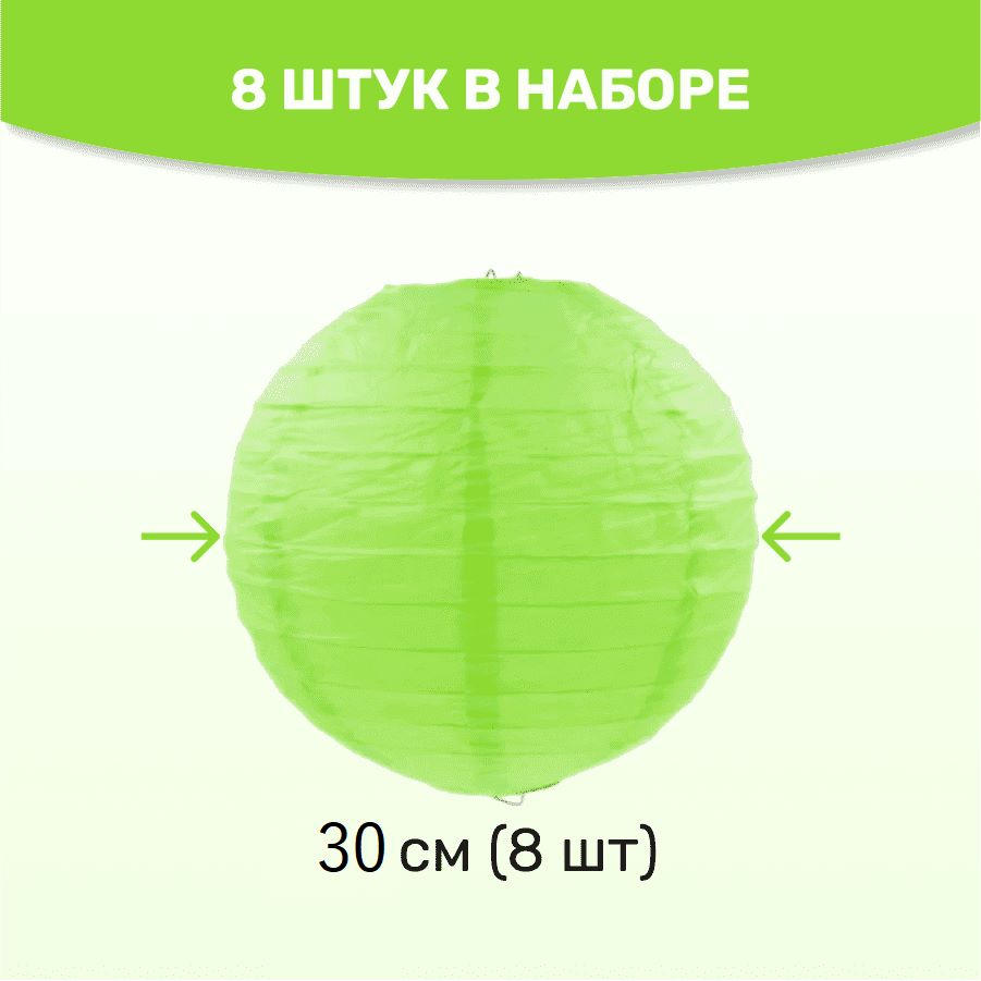 Комплект подвесные фонарики 30 см х 8 шт, салатовый