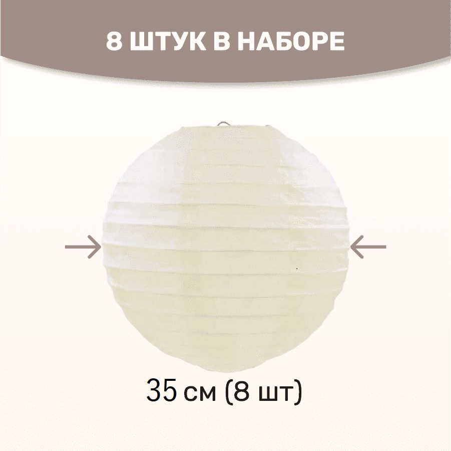 В комплект входит 8 бумажных фонариков и лента атласная.