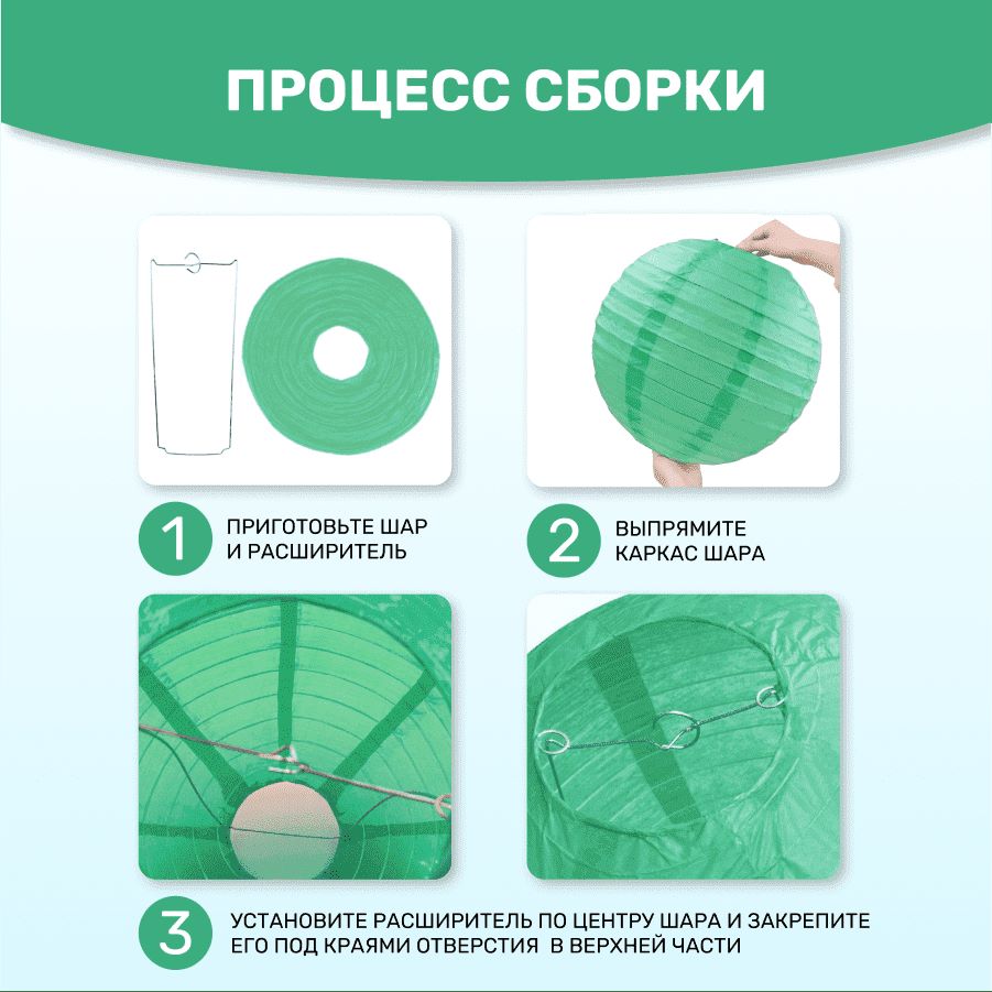 В комплект входит 8 бумажных фонариков и лента атласная.
