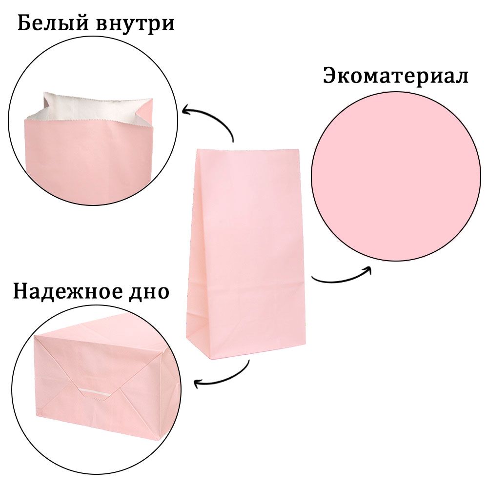 Подарочный пакет из крафтовой бумаги пастельного оттенка с белыми бумажными ручками и белой внутренней стороной.
