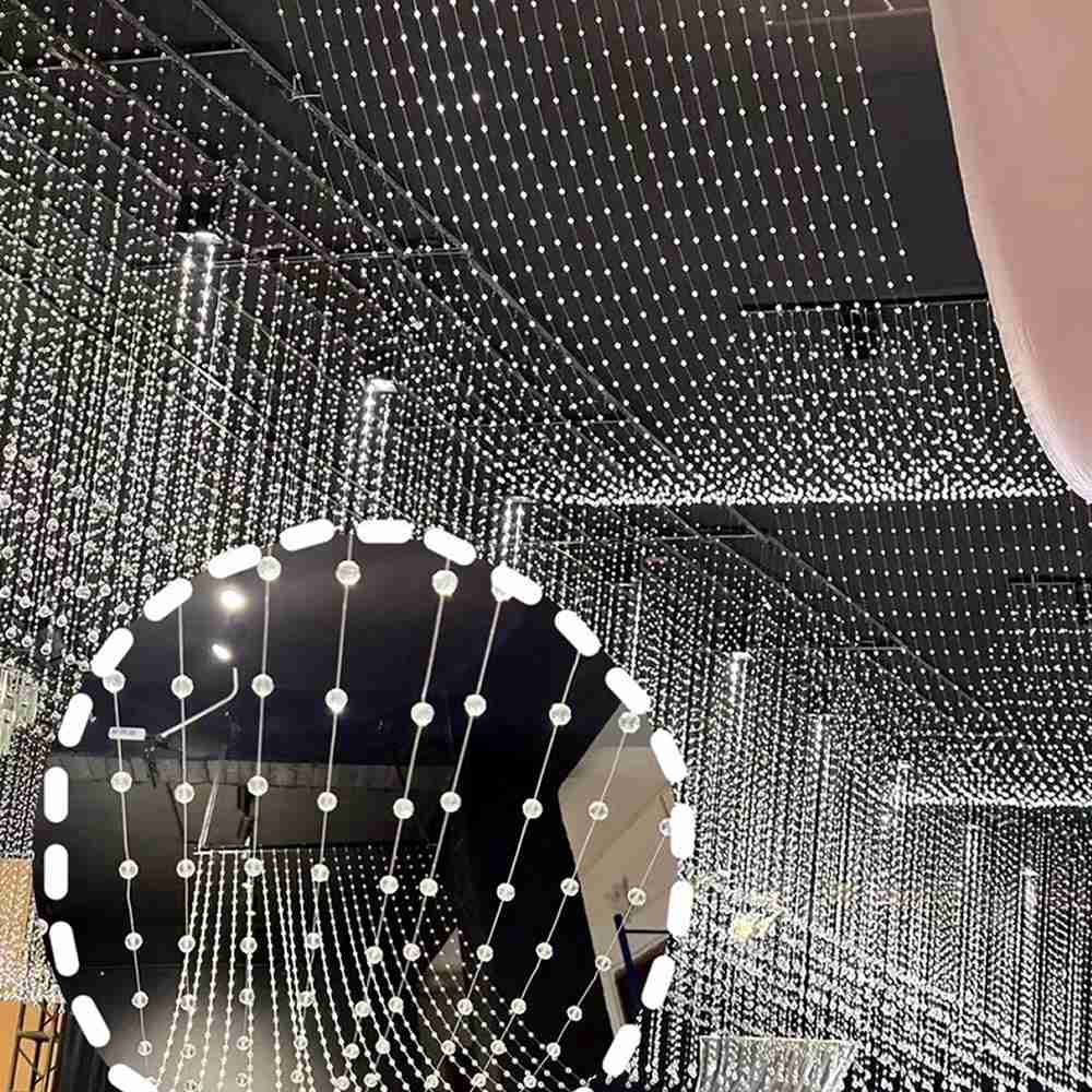 Подвеска создает плотную мерцающую завесу для зонирования пространства, оформления свадеб, фотостудий и жилых интерьеров. Игра света и граней делает подвеску невероятно динамичной и живой.