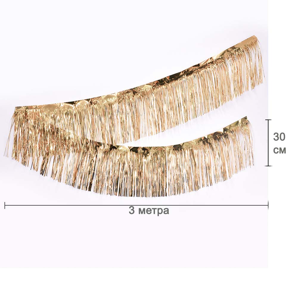 Занавес Дождик бахрома 30 см х 3 м, металлик шампань